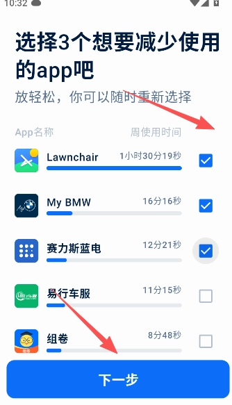 点击你想要减少使用次数的3个软件。