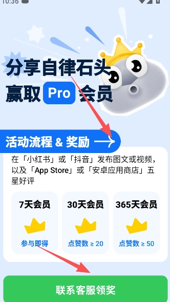选择分享自律石头领取免费的会员。