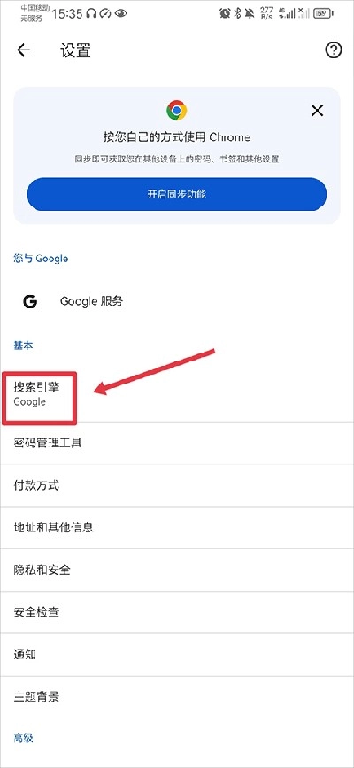2、在设置界面中点击搜索引擎功能