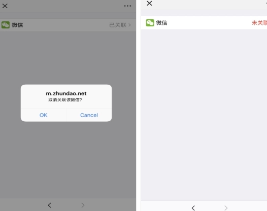 点击 未关联,确认关联→绑定成功