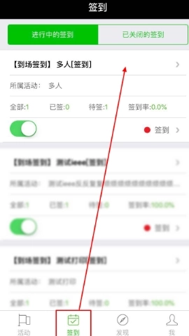 在「签到」界面,点击签到的名称