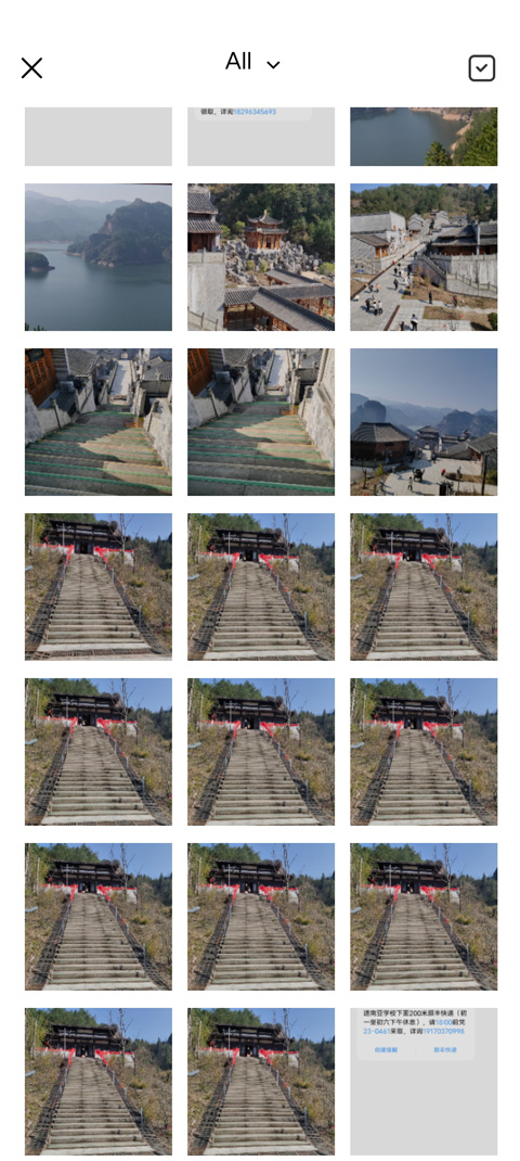 3、在你手机中所有的相册中勾选你想要导入的图片,点击右上方确定即可。