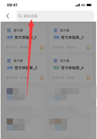 最后在上方弹出页面里输入房间名称搜索即可