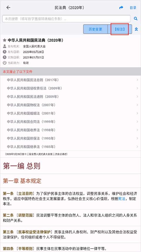 点击进入就能阅读,点击右上角的“历史变更”还能查看具体的变更年份和变更内容。