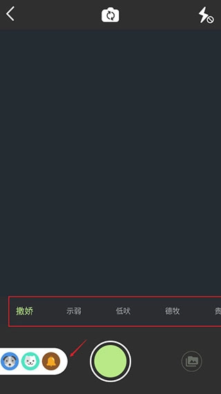 点击拍照按钮后,在界面左下角选择“猫猫”或“狗狗”选项,接着切换不同的表情包样式,最后拍摄对应的猫咪或狗狗即可。