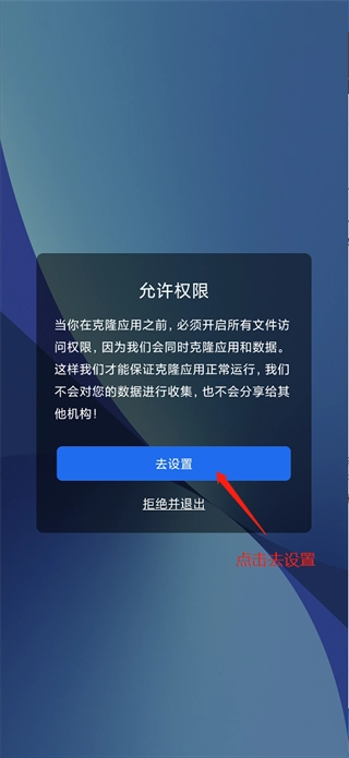 首次打开时,高版本安卓系统同样需要先进行权限授权。操作步骤如下:先点击“开启权限”,手机会跳转至权限列表,接着在列表中找到刚安装的软件“Dual Space Pro”,进入后选择“允许安装”即可完成操作。