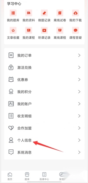 在学习中心,你能够管理自己的学习资料,像已购买的题库和课程都可以在这里处理,并且能随时在线查看相关内容。