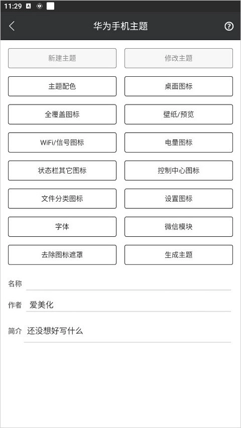 3、输入主题的名称和作者名,然后编辑设置自己喜欢的主题图标。