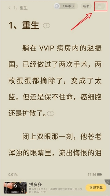 找到想要的小说,点击进入阅读界面