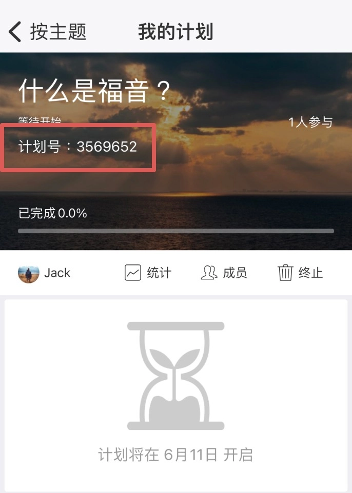 1.在已开启的个人读经计划中,点击计划详情页。