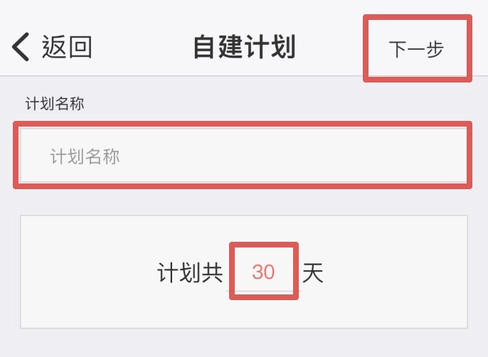 3.设置计划名称和天数,然后点击“下一步”。