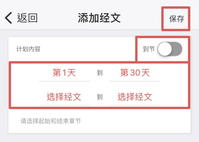 6.手工添加:点击小方块选择天数,再设置圣经卷章。