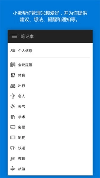 微软小娜是一款既有趣又实用的智能服务软件,用户能在软件中获取丰富独特的智能资源,还能体验到便捷独特的AI服务,享受最具特色的服务内容,快来使用微软小娜吧。