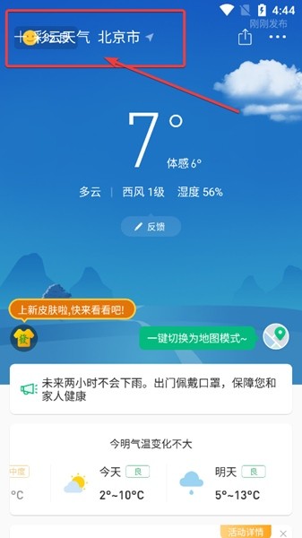 彩云天气预报是一款实用又便捷的天气预报软件,用户能在软件里获取丰富多样的气候信息,找到自己所需的各类天气资源,及时掌握最新的天气动态。此外,软件还提供了全面的服务内容,用户可以快速了解当日的天气状况,找到适合自己的服务类型,快来使用彩云天气预报吧。