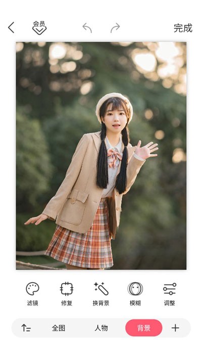 2、点击【背景】,即可进行换背景、背景模糊、修复等操作