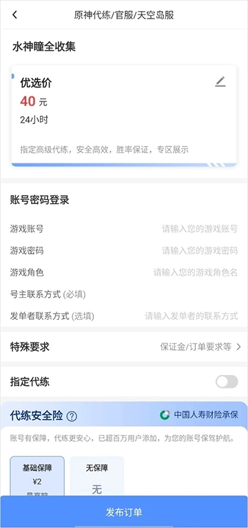【一键代练】发布订单,代练接单,完成订单,一键代练操作简单。