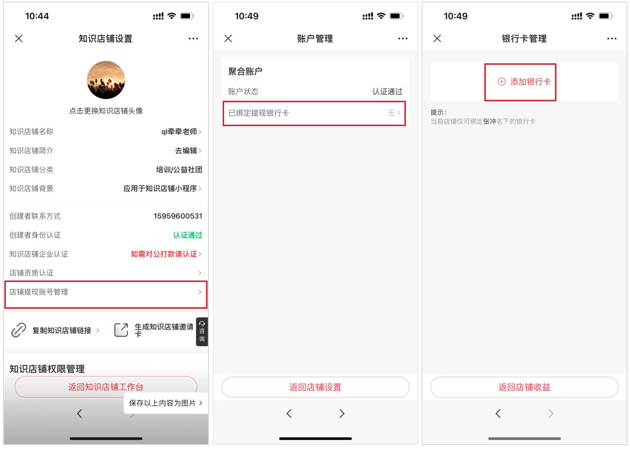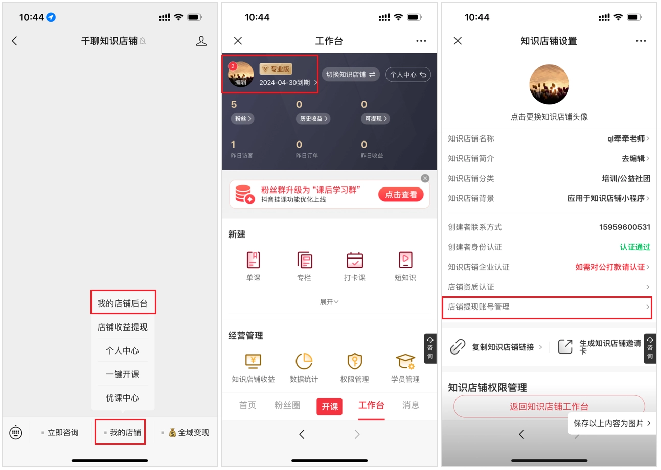 你可以先点击菜单栏里的【我的店铺】,接着选择【我的店铺后台】就能进入知识店铺的管理后台,之后点击个人头像,就能进入【店铺提现账号管理】页面了。