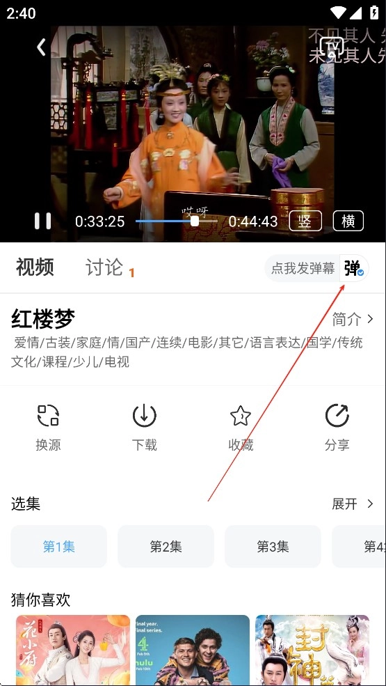打开追忆影视,找到你想看的影片并点击进入播放界面,接着点击图中所示的按钮。