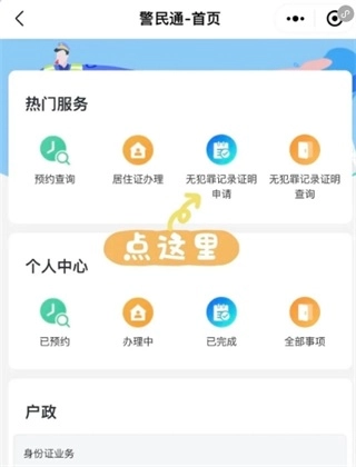 5.回到警民通首页点击“无犯罪记录查询”,即可查看结果。