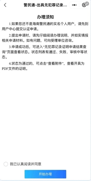 3.在办理须知界面勾选“我已认真阅读并同意”。