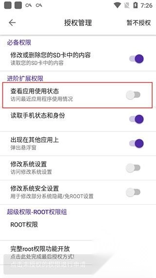 1、它可以帮助检查不同软件的权限使用情况。请不要给这个软件ROOT权限。