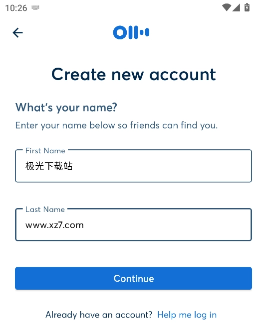输入姓和名,点击“Continue”