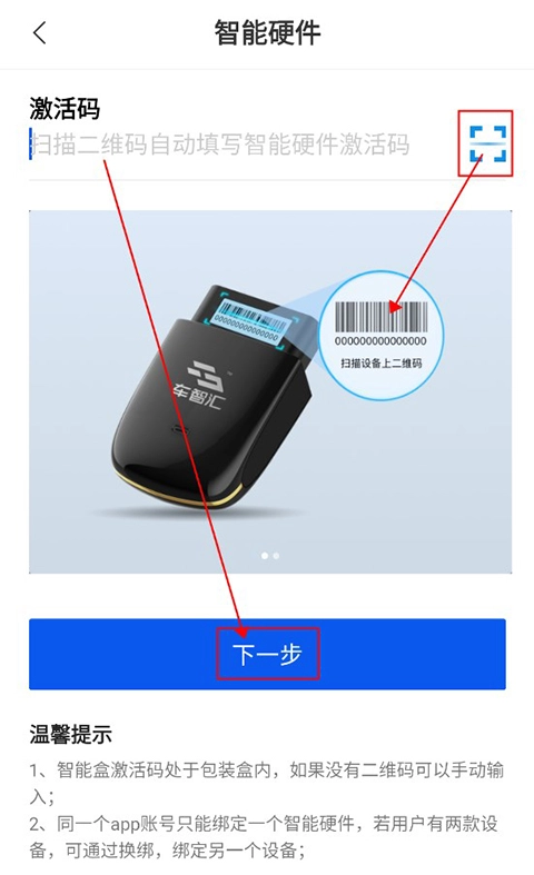 最后用户就可以选择输入设备码或者直接扫描设备上的条形码进行设备的绑定啦!