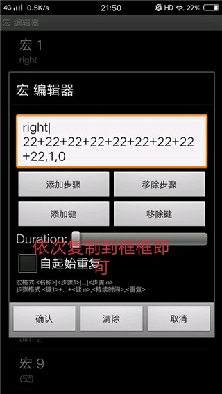 9、按顺序复制到宏中,比如right,将right所在的整行复制到宏一,之后按照这种方式依次操作即可;