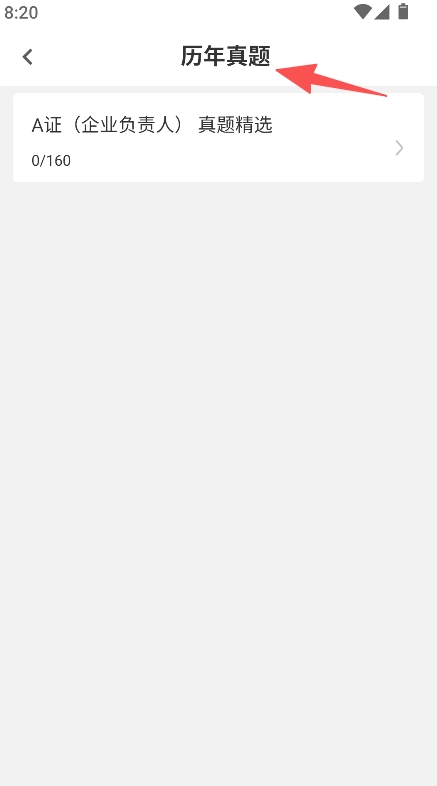 打开软件后,进入历年真题板块,接着选择A证(企业负责人)的真题精选。