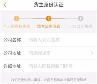 4、货主身份认证——填写公司信息