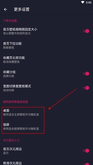 3、进入更多设置后,能找到随机壁纸数据的原始设置项,这里提供主屏幕和锁屏两个选项,您可依据自身需求选择。