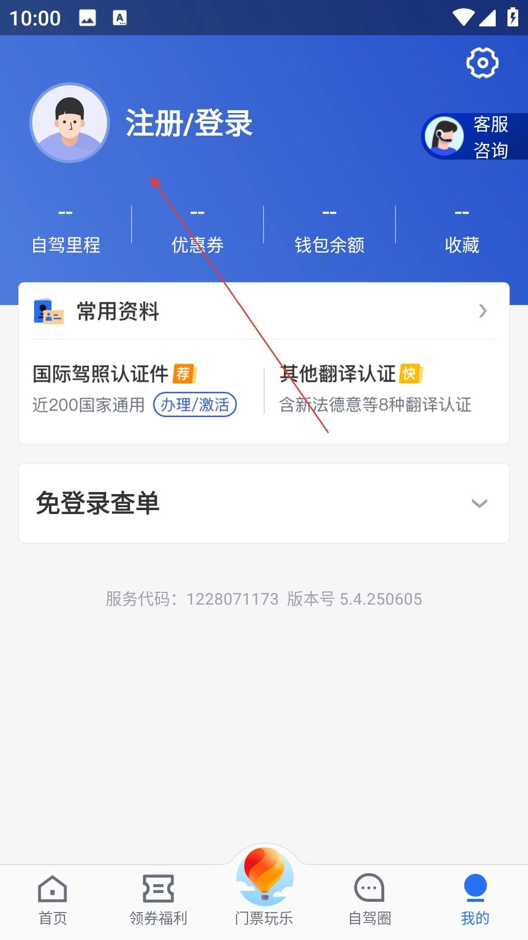 3、进入我的,点注册登录,查里程券,管钱包,看收藏,用常用资料,办驾照认证,查订单。