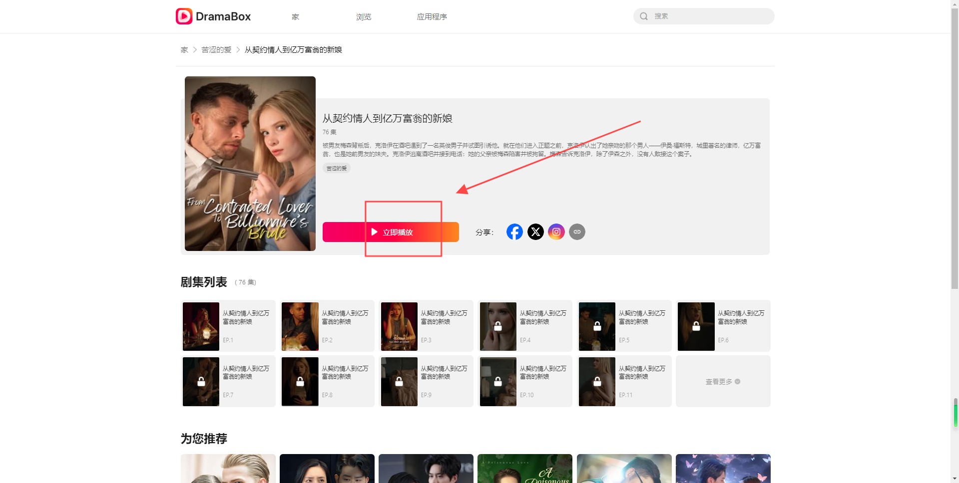 5、在短剧详情页中,根据您的需求选择具体的集数,点击“播放”按钮即可开始观看。