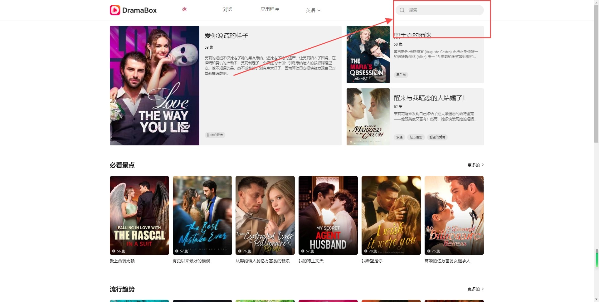 1. 安装后,打开dramabox软件进入主界面中。