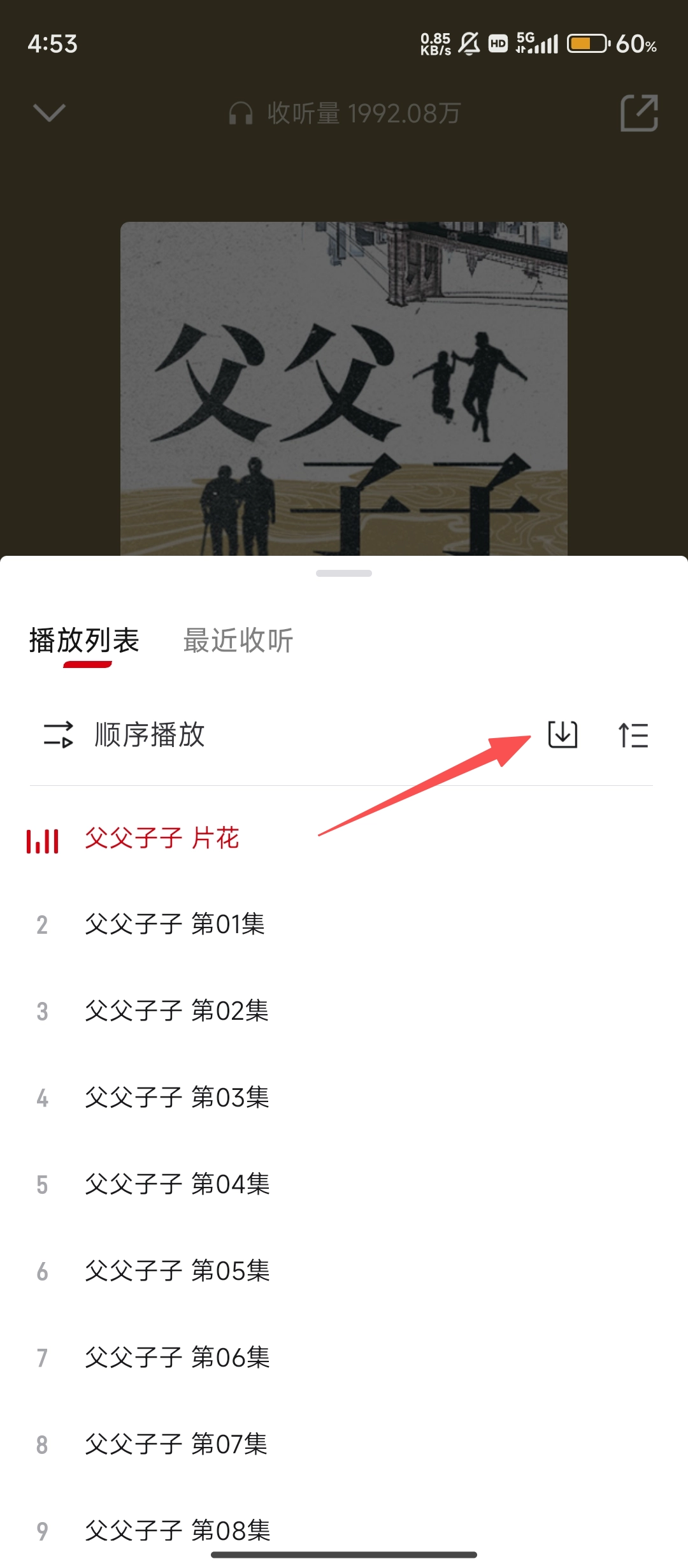 3、在播放列表里,点击对应图标就能进入批量操作页面,这样就可以选择多集内容了。
