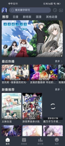 2、首页呈现了多样的分类,涵盖日漫专区、剧场版以及最新的国漫推荐。