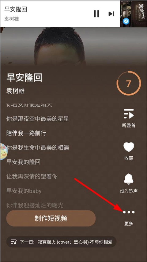 2、识别成功后,系统会自动跳转到歌曲详情页,点击右下角的“更多”图标。