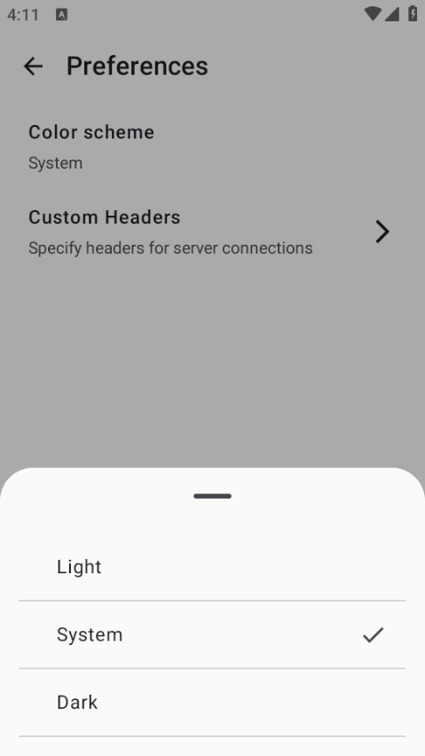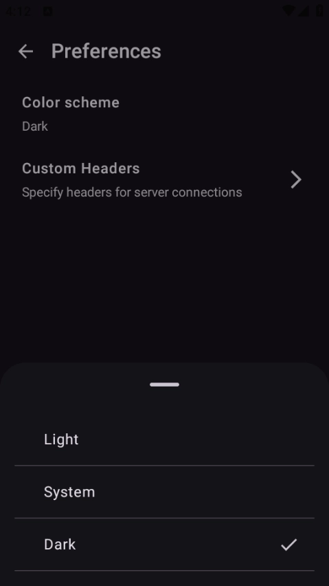 可以看到这里提供了三种颜色模式,分别是light明亮模式、system跟随系统模式和dark暗黑模式。
