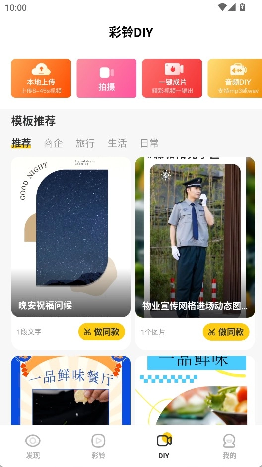 3、彩铃DIY界面提供了丰富多样的彩铃模板,用户可以一键制作同款彩铃