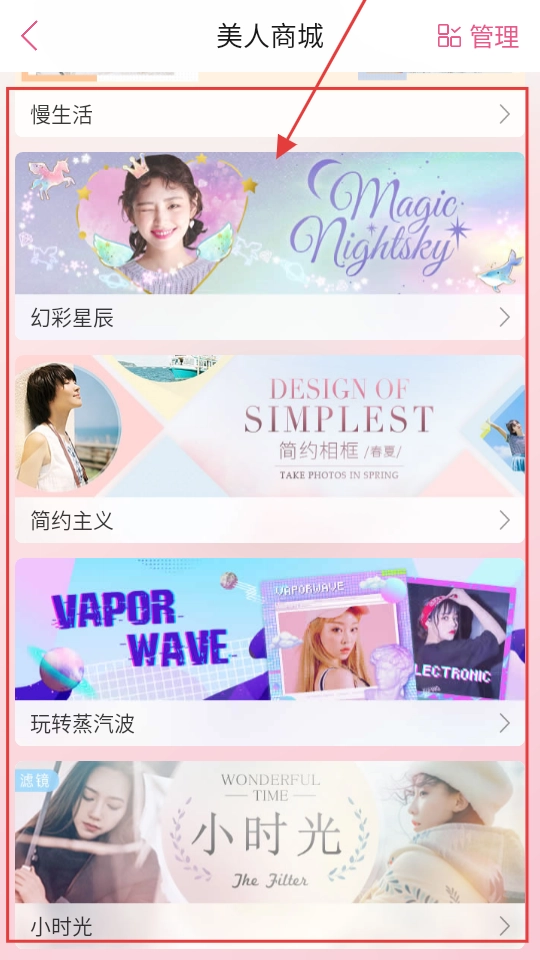 2、美人商城里有幻彩星辰、简约主义等主题,每个主题都超有特色,挑喜欢的点进去看看。