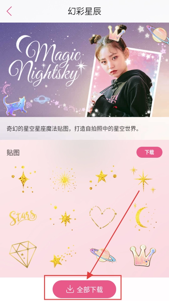 3、幻彩星辰主题里,有超多好看的星空贴纸,想要的话,点【全部】,就能把贴纸都啦。