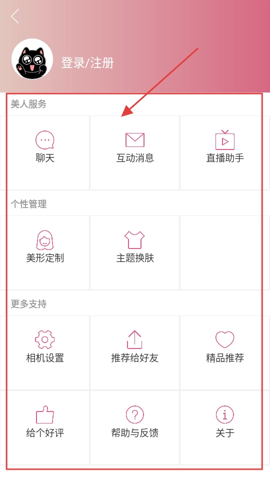 4、还可以向右滑,有聊天、互动消息等美人服务,还有美形定制、主题换肤等个性管理功能,超丰富。