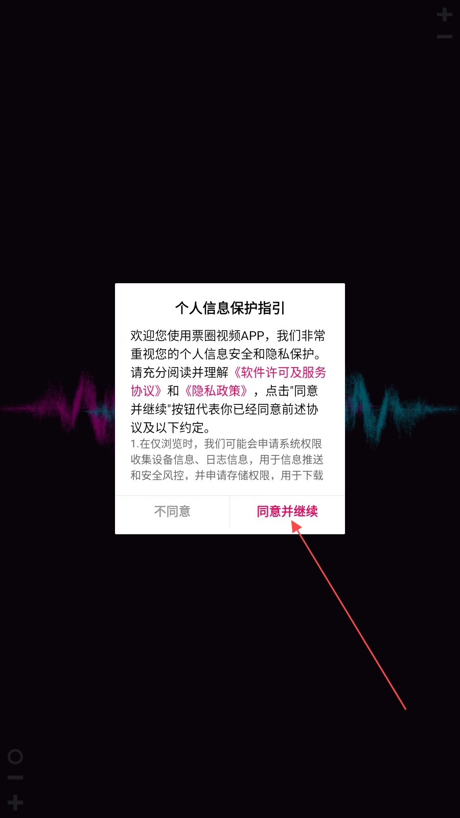 进入应用后,点击【同意并继续】按钮。