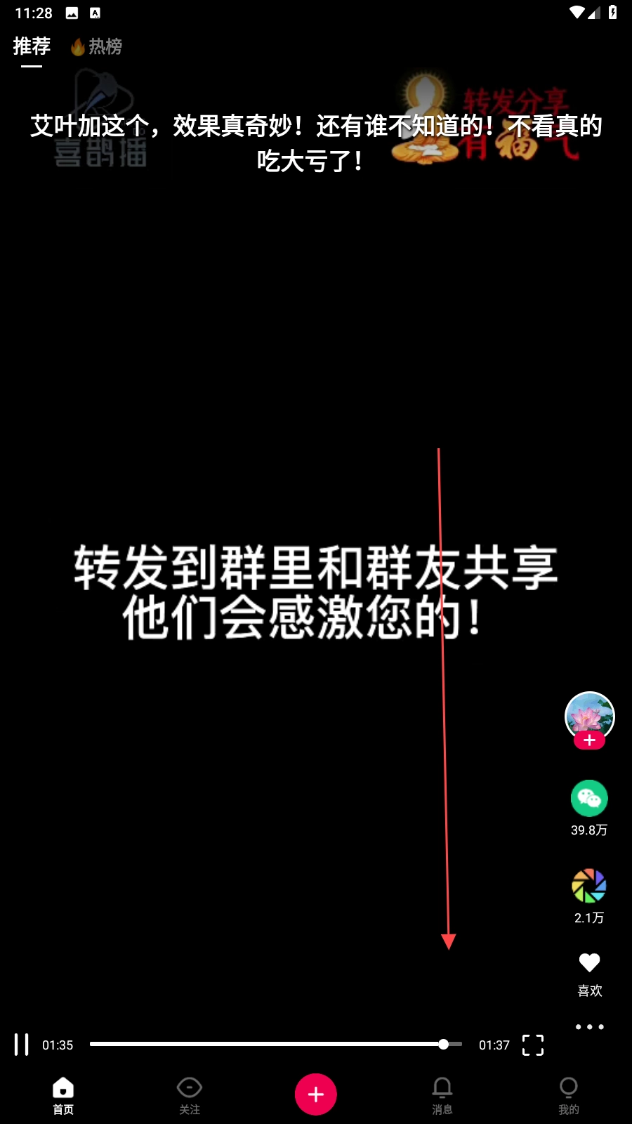 3、手指【下滑】即可查看下一个视频