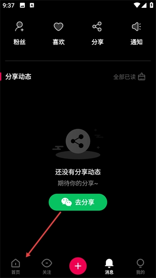 1、打开应用,点击底部的【首页】选项,进入视频播放界面。