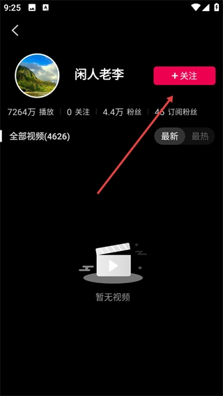 3、在用户主页中,找到右上角的【+关注】按钮。