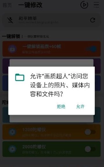 5、进入点击一键解锁画质,点击前去授权就好