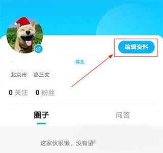 1、打开软件,进入头像页面,点击右上角的"编辑资料"。