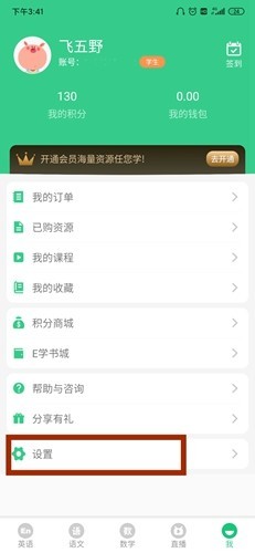 1、英语学习首页面向小学学段,呈现人教版三年级上册的学习内容,同时配备了会员购买优惠及签到活动等丰富功能。