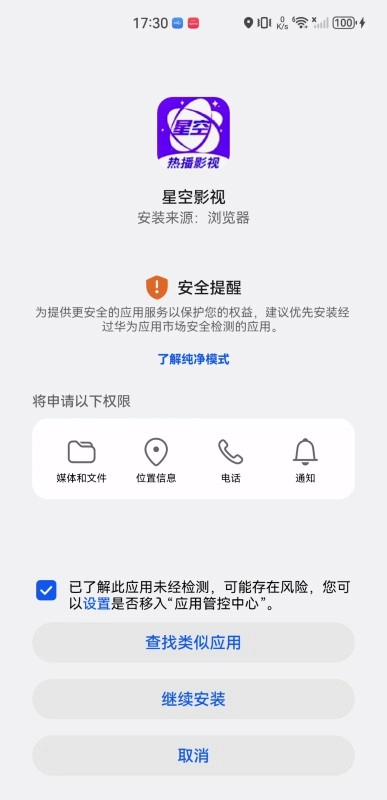 3、第三步,点击勾选“已了解此应用未经检测……”,然后再点击“继续安装”。